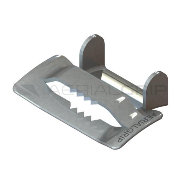 La Hebilla de para Fleje de acero AERIALGRIP®, proporciona fuerza y agarre para una adecuada fijación del fleje alrededor del poste, y facilitar los tendidos aéreos de herrajes para cableado de las telecomunicaciones y/o eléctricos, otorgando resistencia y tensión a las instalaciones de cable, sobre todo a los de fibra óptica.
