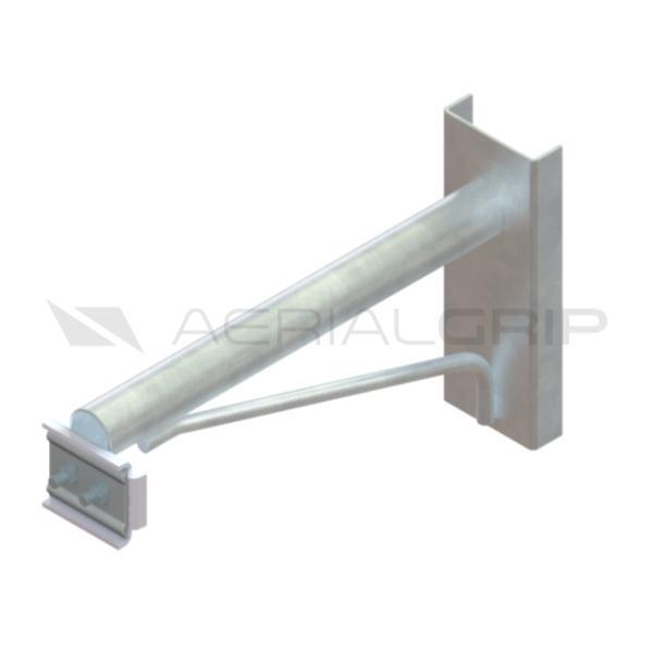 El Herraje De Extensión Para Guía De Acero incorpora una varilla de refuerzo para soportar sin problema el peso del cable y una placa de fijación a poste la cual provee un gran agarre al poste cuando este es flejado.